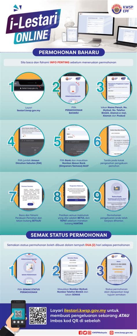 Semakan status i-Lestari dapat dilakukan secara daring melalui website resmi KWSP atau aplikasi i-Akaun. Anda cukup memasukkan nomor MyKad dan kata sandi Anda untuk masuk ke akun Anda. Setelah masuk, Anda akan dapat melihat status i-Lestari Anda di halaman utama akun Anda. Jika Anda mengalami kesulitan untuk masuk ke akun Anda, Anda dapat menghubungi customer service KWSP untuk meminta bantuan.